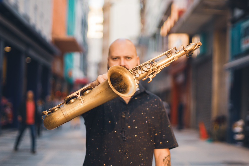 É curioso, tem momentos que é só uma coisa, tem outros que eu acho que é só a outra coisa, e tem momentos que eu acho que tem as duas coisas ao mesmo tempo. A minha fissura sempre foi tocar, né? Já era moleque tocando na igreja, com banda punk, acompanhando dupla sertaneja. Depois, grupo de pagode, fazendo roda de samba, de choro, tendo essa coisa do jazz, da noite, sabe? E aí vem essa capacidade de adaptação. Se você vai convidar algumas pessoas pra uma sessão de improvisação livre, você não vai querer virar aquele personagem do Robert De Niro tocando saxofone sentado na janela. Eu sou meio caxias. Qual é o briefing? Então vamos fazer e ter o cuidado de não ficar parecendo outra coisa.