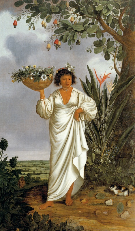 Trata-se – não nos esqueçamos – de uma negra africana e, pois, de uma escrava. Tal qual Eckhout, no entanto, ela é igualmente estrangeira – o que os aproxima. A composição da tela é, como se diz, “uma viagem”, e agrupa, por exemplo, num litoral claramente brasileiro (em que índios pescam à praia), um cesto transbordante de frutos tropicais, uma saia e um chapéu africanos característicos e um cachimbo tipicamente europeu, assim como podem ser também classificados os brincos burgueses e o colar de pérolas.