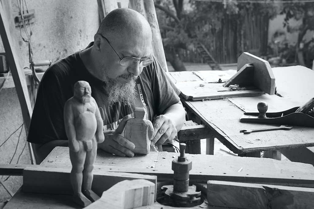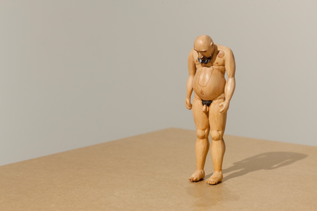 “Efrain Almeida faz da escultura uma possibilidade de autoimagem, autoficção, onde o lugar geográfico, o interior do Ceará, passa a se apresentar na madeira característica daquela região, a umburana, deixando, muitas vezes, o lugar atravessar seu corpo, apresentado em autorretratos. Esta arte assumira a primeira pessoa como situação, um lugar que questionara o formalismo autônomo, apresentando problematizações sobre a diferença, a desigualdade.”