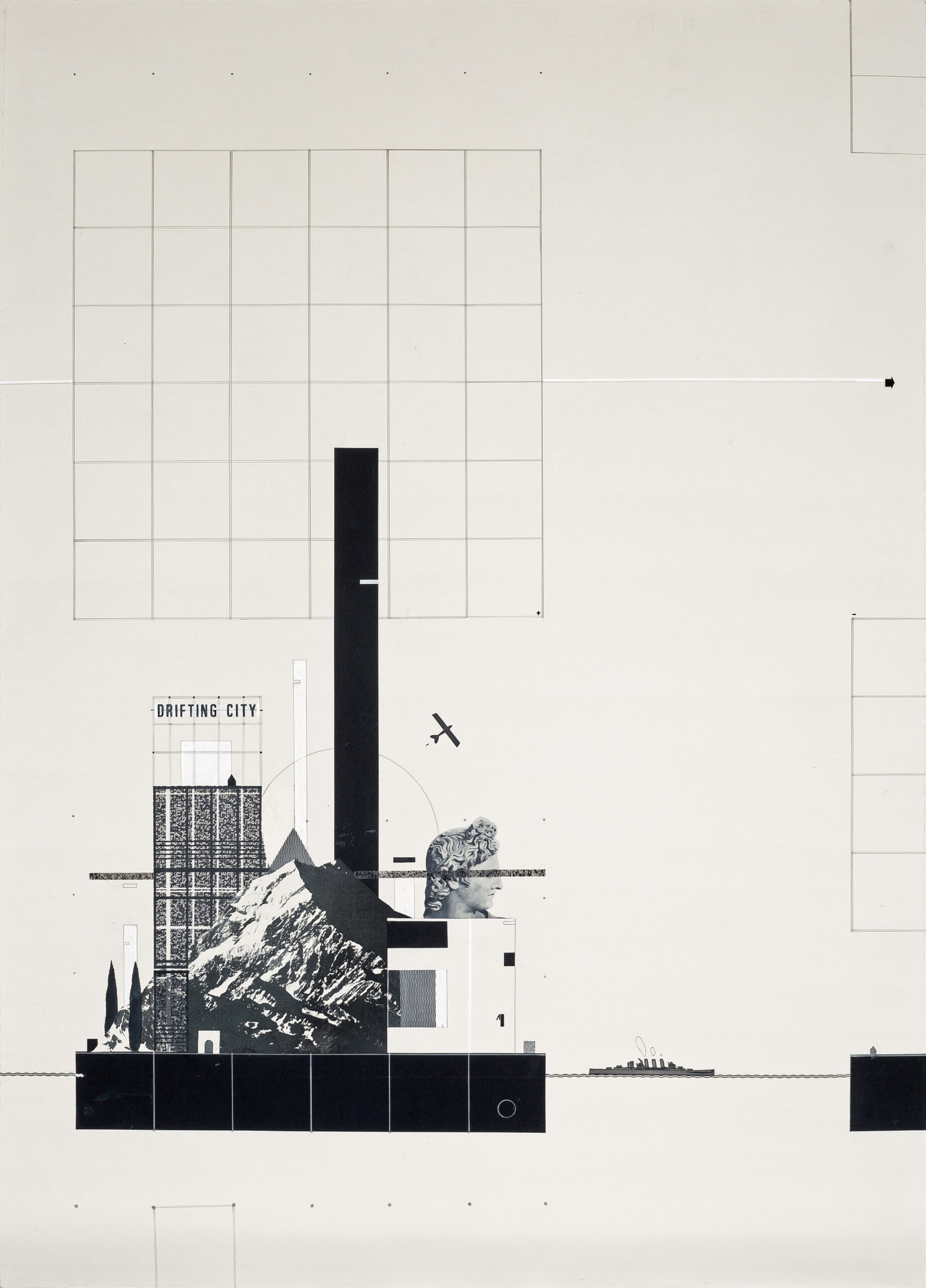 A seguir, um pedaço de cidade se prepara para zarpar. Primeiro, ele se descola da malha urbana pela escala. Parece ser justamente quando mais se verticaliza e se adensa que ele se põe em condição de navegar [cidade à deriva]. Em certa medida, todo navio é exatamente assim, uma parcela urbana, como território itinerante de um país, que se lança ao mar. Do mesmo modo acontece no trabalho de Bruna Canepa, pois aqui também a carga que aquela embarcação carrega é a matéria-prima com a qual ela constrói sua obra. Por isso, a obra que ilustra a cidade à deriva em seção transversal [drifting city, trabalho colaborativo / Estúdio Miniatura], e planta em malha ortogonal representada logo acima, é tão significativa. Nesta carga cultural, estritamente urbana, incluem-se a montanha e as árvores; a infraestrutura, as embarcações e os aviões; os edifícios e as esculturas; enfim, o todo existente no mundo já descrito pelo homem [construído ou não por ele] faz parte dessa bagagem cultural sobre a qual essas obras tecem a sua reflexão.