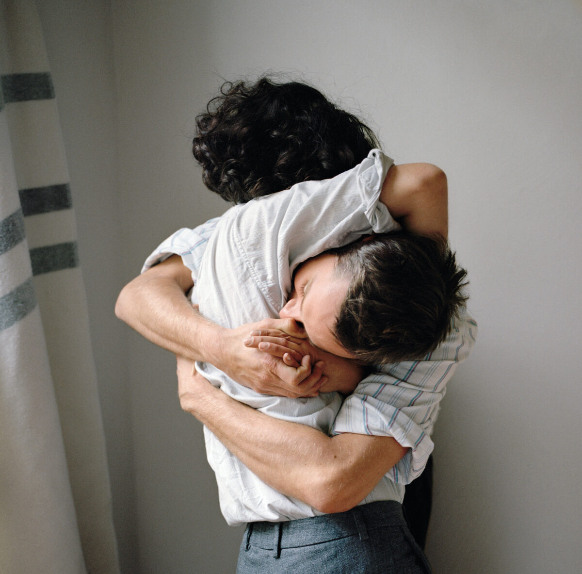E claro que há o combate que leva a este lugar secreto. Os casais, seus corpos; eles fluem de um para o outro. Confiança. Confiança ao longo dos anos te leva a isso. Uma continuidade. Esses momentos, num relacionamento, são pontos de virada cruciais, meu amor, e você precisa estar alerta, pois é fácil virar as costas para eles; esses momentos não são fáceis, mas eles te dão a força para continuar. Primeiro a crise, depois uma pausa e, depois, depois vem o momento que vocês se reconhecem novamente em silêncio. Este é o abraço. Ah, sim, você capturou mesmo, delicadamente, delicadamente. Nada pessoal a você ou a mim, mas a todos – é pessoal coletivamente. E é limpo, suave e leve, eu gosto disso; e doméstico, tecidos onde fazemos amor e brigamos e fazemos amor e… Não sei como os jovens conseguem hoje em dia, com todo esse compartilhamento do raso.