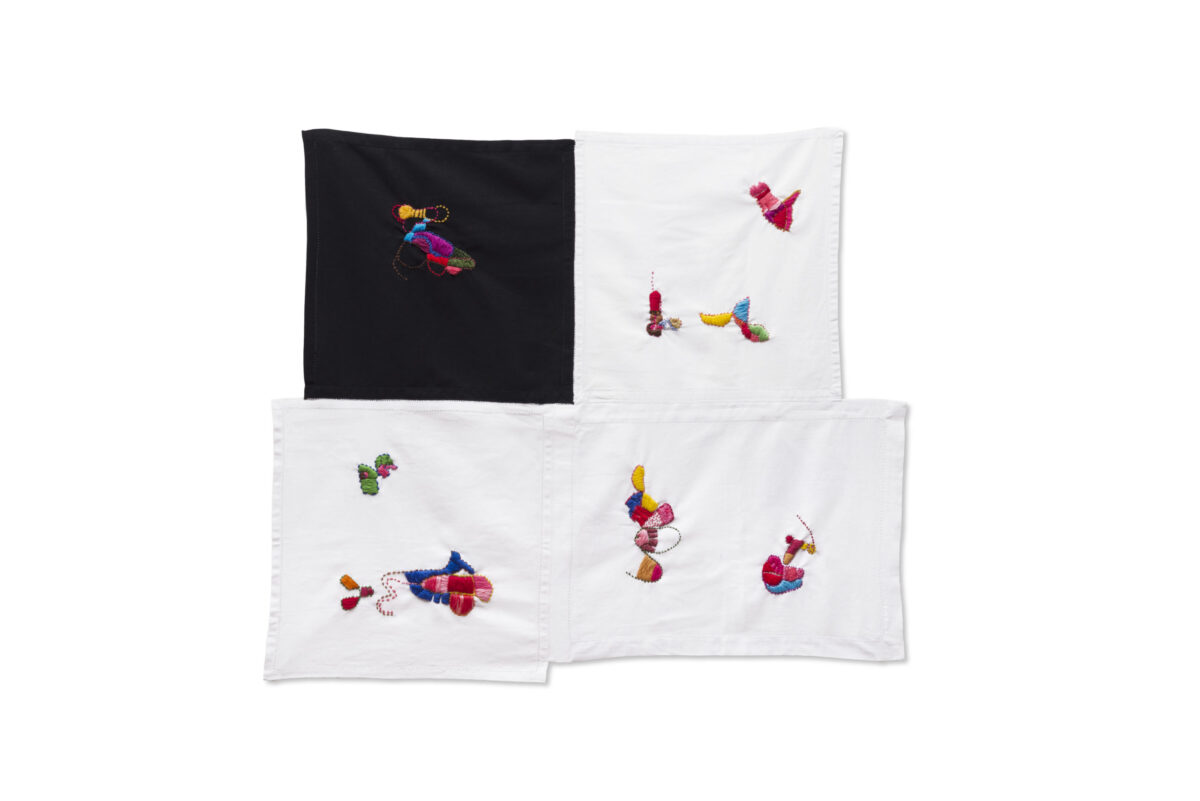 Travar a batalha com um trabalho. (a)casos eróticos é uma série de bordados de Rivane Neuenschwander que descobri em 2014, quando ainda era assistente de vendas da galeria que representa a artista. Não tinha maneiras de responder a esse atravessamento a não ser produzindo uma obra-licença que não deixa de ser uma homenagem, mas é também – e sobretudo – uma obsessão. Explicitei nele o erótico em falos voadores, trechos de paus e bolas e alguma coisa a mais. Demorou a acontecer; afinal, bordar é uma ação que percorre o tempo a fio, perdura, se prolonga, devaneia. Bordar é também uma penitência, só que deixando rastros.