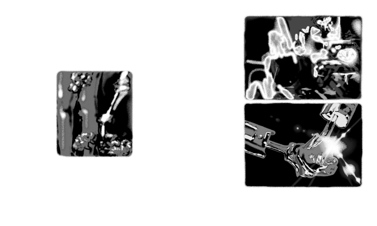 As mesmas mãos que vieram pelos meus pais se apresentaram no limiar da porta de casa. Dedos longos, firmes e rosados, as pontas levemente calejadas, as unhas polidas, denunciavam outra maestria, algo de cordas e arcos, sopro e oclusão, algo alheio ao que faziam ali, mãos que enfim vieram por mim, vieram por nós. Seguimos, sem saber o destino, amontoados, chacoalhando no escuro.