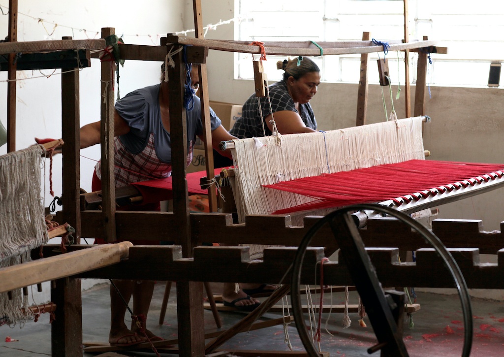 Nos dias de hoje, Aline é a tecelã mais nova ali, com seus 40 anos de idade, também rendeira e tece com toda sua bondade desde os 10 anos. É forrozeira de pé leve e sorriso contagiante. Ela e Dona Fernandina são as grandes tecelãs à frente da Associação. Tecem com tamanha perfeição e vigor que é de hipnotizar-se a cada manejo, em teares nos quais só se tece em dupla. Cada qual faz uma parte e, depois, dançam em conjunto. Lindo de ver.