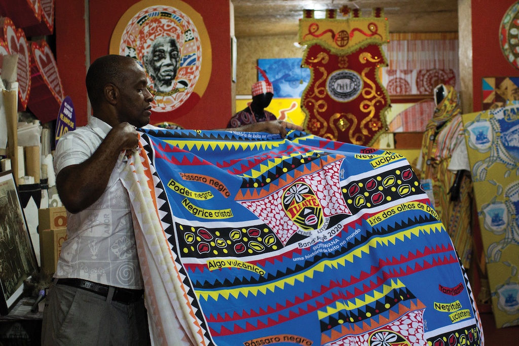 Outro dia eu vi uma mulher no shopping com um vestido preto longo, de Goya Lopes, e estava lindo demais aquilo. Uma mulher branca, aparentemente de classe média, que foi ali e pagou uns R$ 600, naquele vestido. E, com certeza, Goya já pôde pagar o funcionário que estampou aquele tecido, e está resolvido. Daqui a uns anos, a mulher que comprou ainda terá o vestido e vai lembrar da artista Goya Lopes. Uma artista negra engajada, que tem um discurso, sabe das coisas. Eu quero que Goya se dê bem, e eu também quero me dar bem. A gente tem que se dar bem, e não podemos ter medo de comprar o carro e pensar que vão falar: “Olha lá o cara. O dono do bloco”. É o quê? Vovô do Ilê vai ter que ficar andando a pé para provar o que, para quem? João Jorge (diretor do Olodum) tem que ter o carro dele. Carlinhos Brown fala isso o tempo inteiro: “Como é que eu vou ter vergonha de comprar uma cobertura? Se eu tiver a grana, eu vou comprar mesmo e acabou a história”. Quando ele fez Guetho Square lá no Candeal, foi um efeito estético. Depois do Guetho, de toda história de Brown com a Timbalada, pode descer, é tudo pavimentado. Antes era um esgoto a céu aberto. Não havia interesse e ninguém olhava aquele lugar. Hoje as casas são pintadas, decoradas, com grafismo que veio através desse processo.