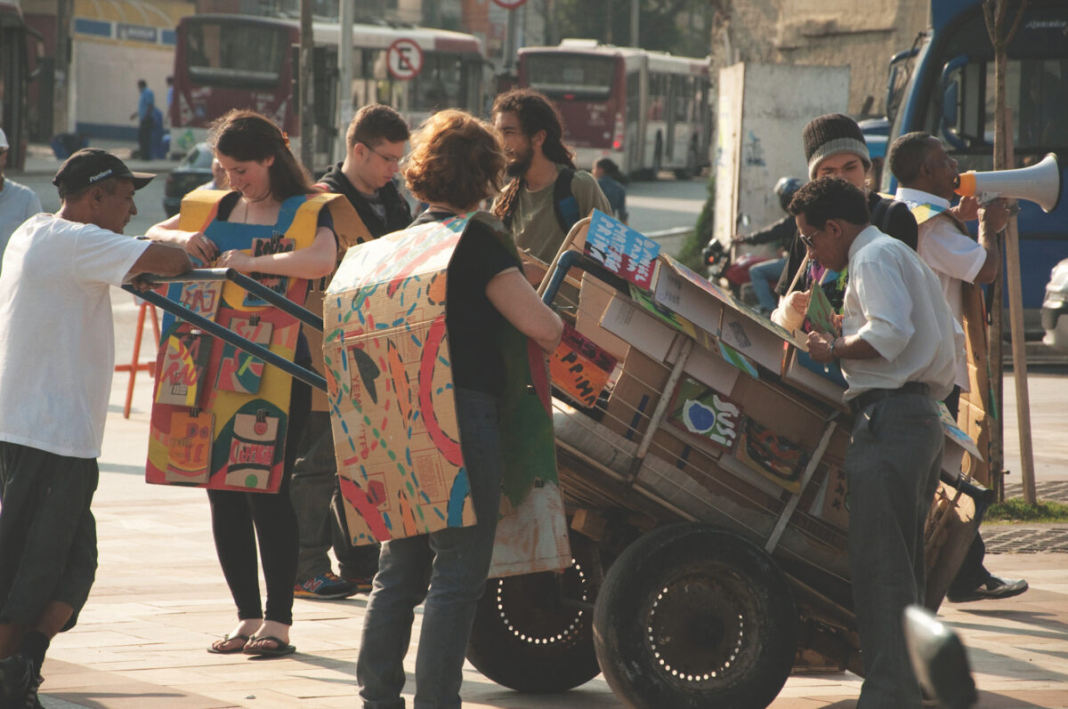 Notam-se, então, alguns “desvios” desencadeados por aquele papelão que em um primeiro momento é lido de forma equivocada e simplista como lixo: 1) papelão descartado entra para o circuito da literatura e das artes visuais; 2) os/as catadores/as atuam como artistas, escritores/as, editores/as e oficineiros/as; 3) os livros são vendidos por valores acessíveis; 4) o projeto gera renda para uma das classes mais vulneráveis de trabalhadores autônomos; 5) os/as catadores/as circulam por ambientes previamente negados à sua condição social; 6) é construído um ciclo de emancipação da produção, em que o/a autor/a é produtor/a de novos/as autores/as.