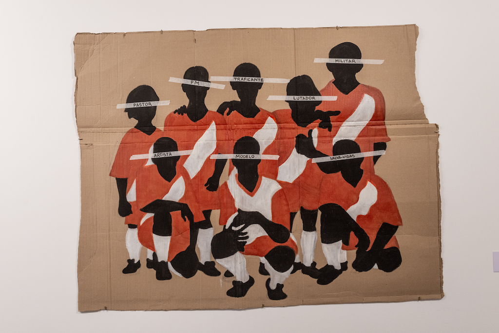 Também faziam parte da exposição obras como Seleção (2018) e Arte preta tipo exportação (2019). A primeira, uma pintura em tinta acrílica e fita crepe sobre papelão, que retrata uma foto da infância do artista, com seus amigos, no time de futebol. Sem as faces aparentes, a fita crepe sobre os olhos veda ao mesmo tempo que anuncia qual foi o destino de cada um dos meninos: militar, traficante, pastor, PM, lutador, artista, modelo. Já Arte preta tipo exportação, uma pintura acrílica sobre juta, remete às sacas de café e a exploração dos corpos pretos como objetos, a comercialização dos corpos negros como se fossem mercadorias. “Esse é um trabalho sobre um lance que aprendi com a Jota Mombaça, que é a hipervisualização do corpo negro como objeto enquanto é invisibilizado como sujeito”, escreve Mulambö em seu site.