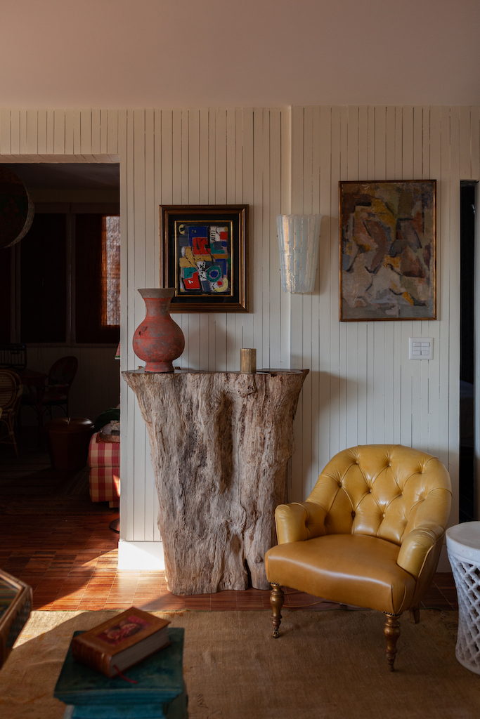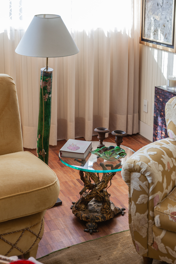 O edifício Araucária, construído na década de 1960, pelo Rino Levi, é uma paixão antiga. Eu tinha feito um curso na FAAP e, como meus professores eram arquitetos, eu sabia quem era o Rino Levi. Tinha uma amiga que morava no prédio do outro lado, em frente, na 9 de Julho, que é exatamente igual. São dois prédios gêmeos que ele construiu. E eu adorava esse prédio em que ela morava. Achava muito moderno para a época, com uma coluna no meio de todos os apartamentos. Eu adorava. Então casei, morei em outro lugar e, depois, um dia, andando a pé — porque gosto de caminhar —, eu parei nesse prédio e perguntei se tinha um apartamento para vender… E tinha! Era exatamente o que eu queria, então comprei o apartamento. Deve fazer uns 6 anos, mais ou menos. Como eu morava na Sampaio Vidal, que é a mesma rua onde eu tenho o antiquário, eu fiquei 40 anos morando por lá, o que era muito cômodo. Cheguei a alugar o imóvel algumas vezes e, depois, quando começou a pandemia em 2020, a gente ficou mais em casa e deu tempo de refletir, de saber o que que a gente quer em termos de conforto, de praticidade, de tudo. Daí eu falei: não vou alugar mais! Vou alugar o meu e fazer uma reforma para mudar para o outro. E foi isso que eu fiz. Foi uma época boa, porque ainda tinha material de construção à vontade, depois de 2020 que as fábricas pararam. Hoje em dia, para fazer uma reforma é bem mais difícil, porque tem muito material faltando. Mas, na época, eu fiz de agosto até dezembro. Mudei em dezembro de 2020 e estou lá, feliz.