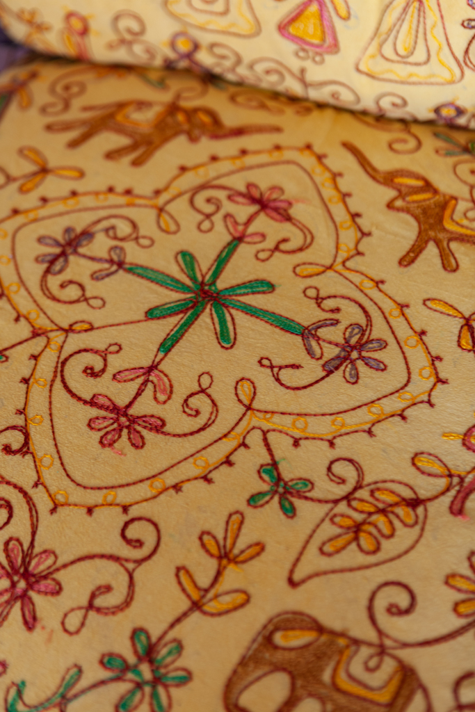 Para a criação, tudo serve de referência e inspiração, seja aqui em São Paulo, no Rio de Janeiro, na Bahia, em Alto Paraíso. Eu tenho sempre o olho muito atento, é uma coisa natural. Eu percebo coisas que estão meio escondidas. Apesar de elas estarem pouco à vista, eu percebo que elas existem. Com toda essa observação, a gente cria uma noção geral do que está acontecendo no mundo em termos de desenho, arte, mobiliário… Nas viagens para a Europa, para a Índia, para a China, para o Egito, vou com o mesmo olhar daqui, um olhar que está sempre aberto, prestando atenção em tudo o que é belo, porque a beleza fascina. Do mesmo modo que me fascina, eu consigo passar para as pessoas o que me fascinou, me cativou, transmitir para elas por que tudo aquilo poderia interessá-las também. Por trás, tem sempre uma história, um lugar para lembrar — essas memórias visuais ficam registradas na gente. Para mim, é ter o olhar atento na rua, ficar de olho em como as pessoas se vestem atualmente, como as pessoas comem, que tipo de comida elas comem — faço isso especialmente quando eu vou para a China e para a Índia. Comer só comida local, por exemplo, é muito especial, porque é diferente da nossa e traz tanta inspiração. Isso tudo com o colorido da natureza inspira a gente para chegar aqui e criar um monte de coisas.