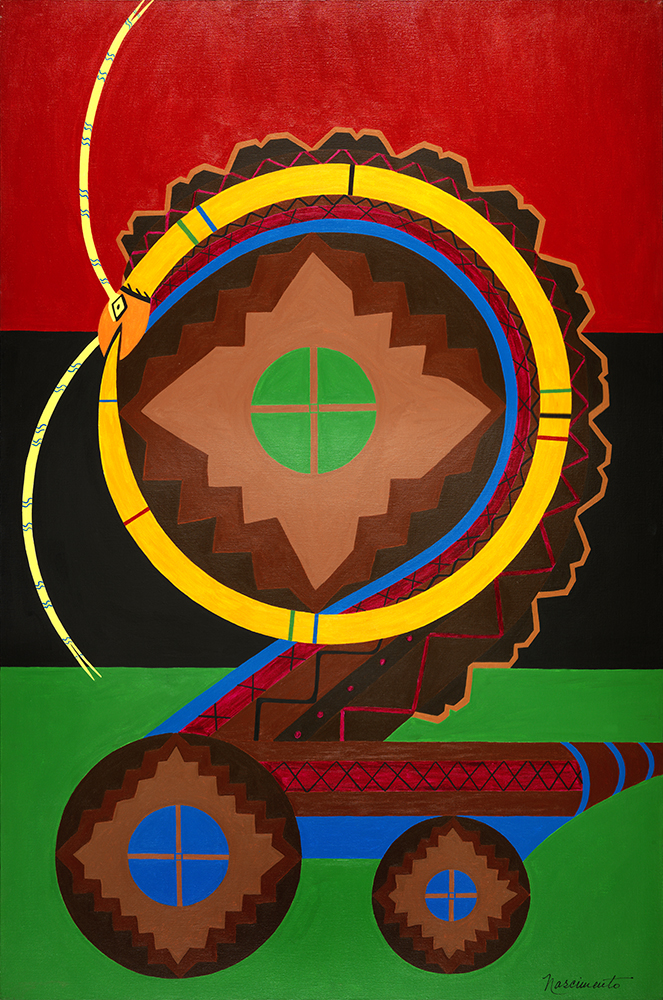 A transmissão de valores e tradições da história cultural africana e diaspóricas são o fio condutor das produções de Abdias Nascimento, centradas nas raízes africanas, em especial, a cultura Ioruba, na qual os Orixás são as bases de referências pictóricas, reflexão direta e experiencial – estética de si como homem, no sentido mais humano da palavra, e como continuidade africana. O legado deixado por Abdias nos convoca a um devir coletivo de rompimento da brancura imposta nas produções artísticas contemporâneas que renegam a erudição, o caráter plástico e de comunicação que essas referências transbordam para além do lugar de uma única universalidade.