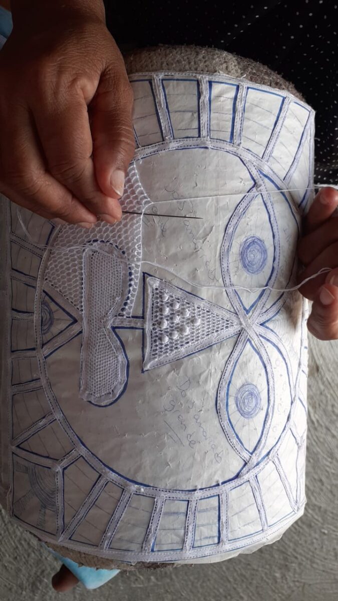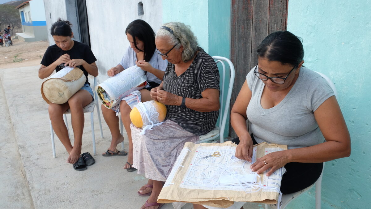 Em cenários de muita precisão, o trabalho iniciava já na infância, com sentimentos de curiosidade e fascínio que se misturavam com a necessidade de fazerem-se produtivas desde muito novas para auxiliarem os pais na gestão do lar. Percebemos isso em muitas falas, como a da mestra Suelene Cavalcanti, de São João do Tigre, que conta: “Comecei a me desenvolver com a renda na casa das vizinhas. Visitava a casa de umas moças e ficava lá olhando. Ninguém me ensinou, comecei desenvolvendo com meu olhar. Na época, meu pai e minha mãe não tinham condições de comprar o material pra eu aprender, foi aí que eu tive um pensamento de pegar a ourela de tecido, de onde eu tirava o fio e a fitinha pra treinar”.
