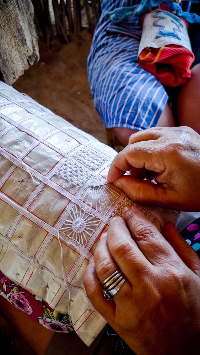 Quando as artesãs, em sua maioria entre os quarenta e sessenta anos, nos contam sobre como aprenderam seus ofícios, percebemos muitos pontos comuns. Em geral, elas recordam que foi com nove ou dez anos que, de tanto olharem as mais velhas trabalhando, recriaram no gesto o conhecimento que muitas vezes não era repassado em palavras.