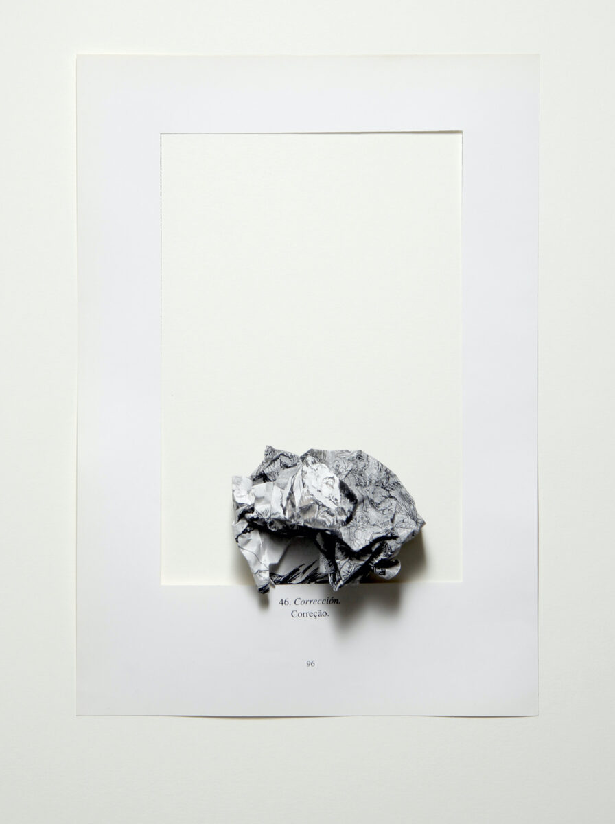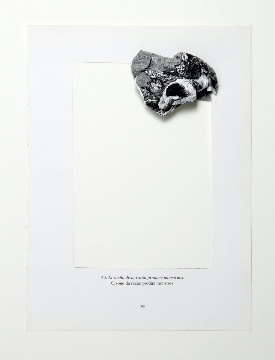 O que se tem, então, é um branco-luz, um branco-prisma, um branco-respiro, um branco-pensamento, que reseta, redefine e rearranja a ordem das coisas. São, enfim, colagens que falam também de outras possibilidades de lidar com a ausência que atravessa a vida em seu sentido amplo e profundo; desde sua concepção econômica, material, política e social até sua percepção emocional e simbólica. São trabalhos que anunciam a falta por meio de sua presença, da possibilidade de poder imaginar ao se deparar com um espaço em branco a ser preenchido.
