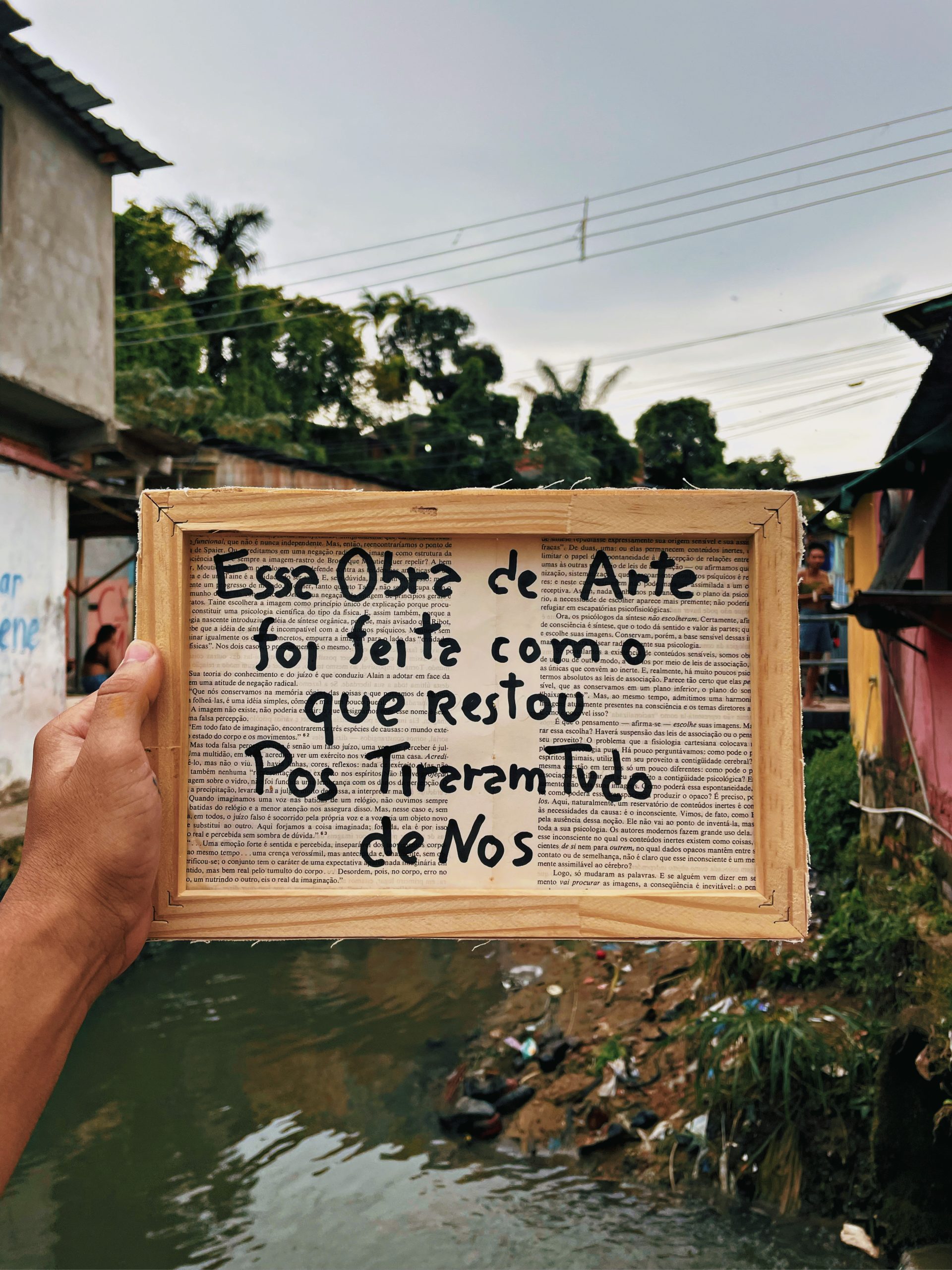 É como Sarah Campelo defende: se a gente não der uma resposta social para o nosso território, a nossa arte vai ser só uma moldura, e o diploma, um pedaço de papel.