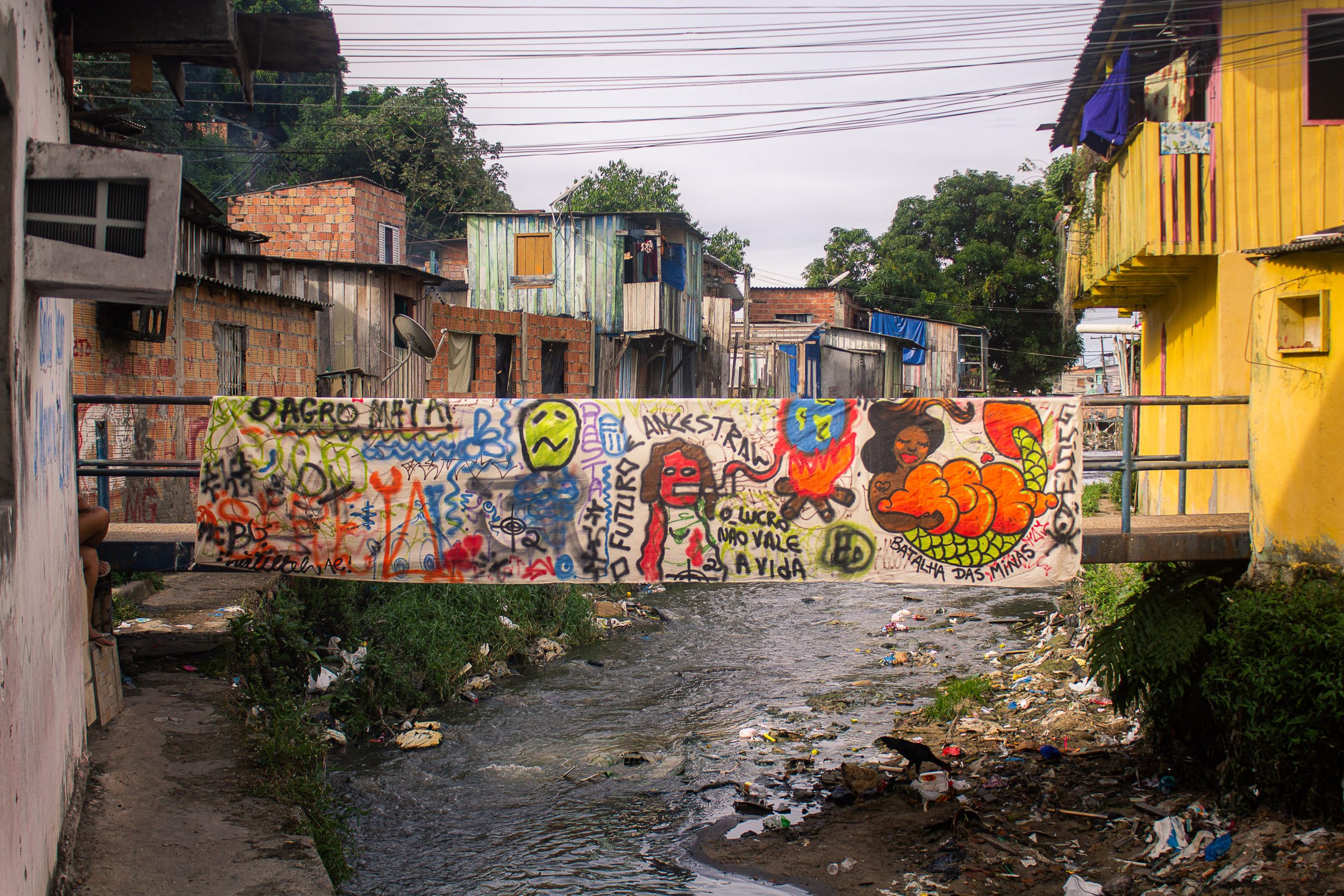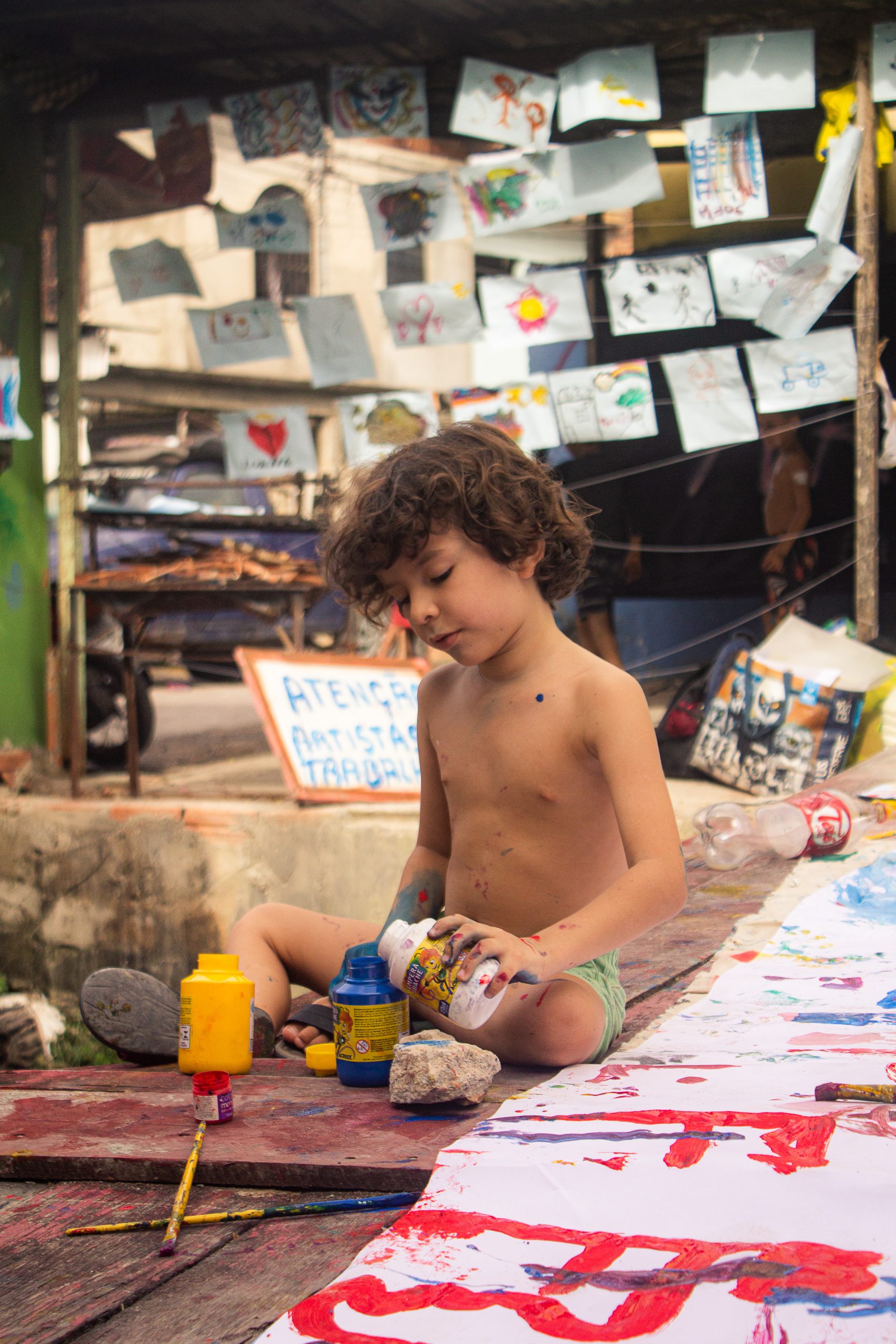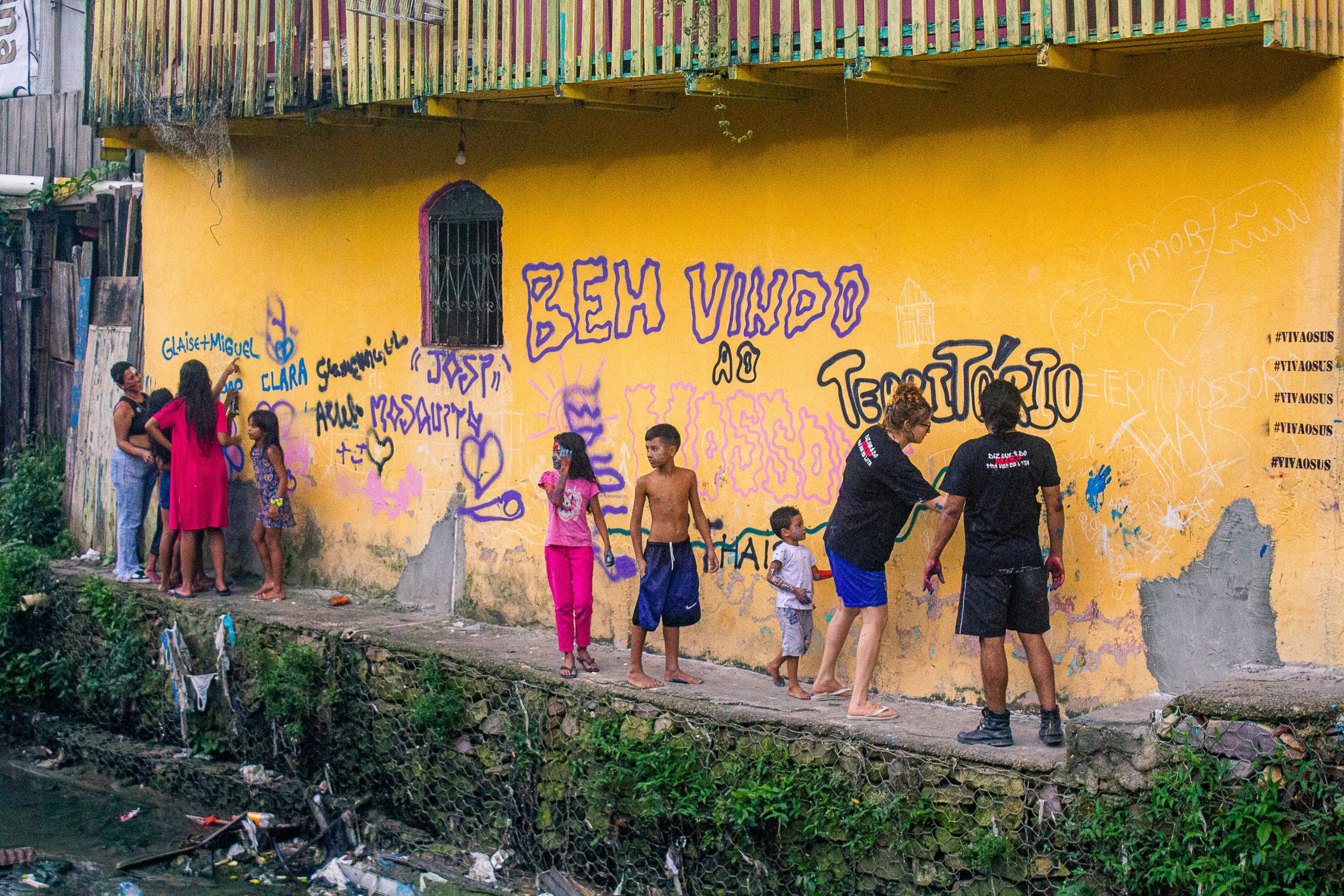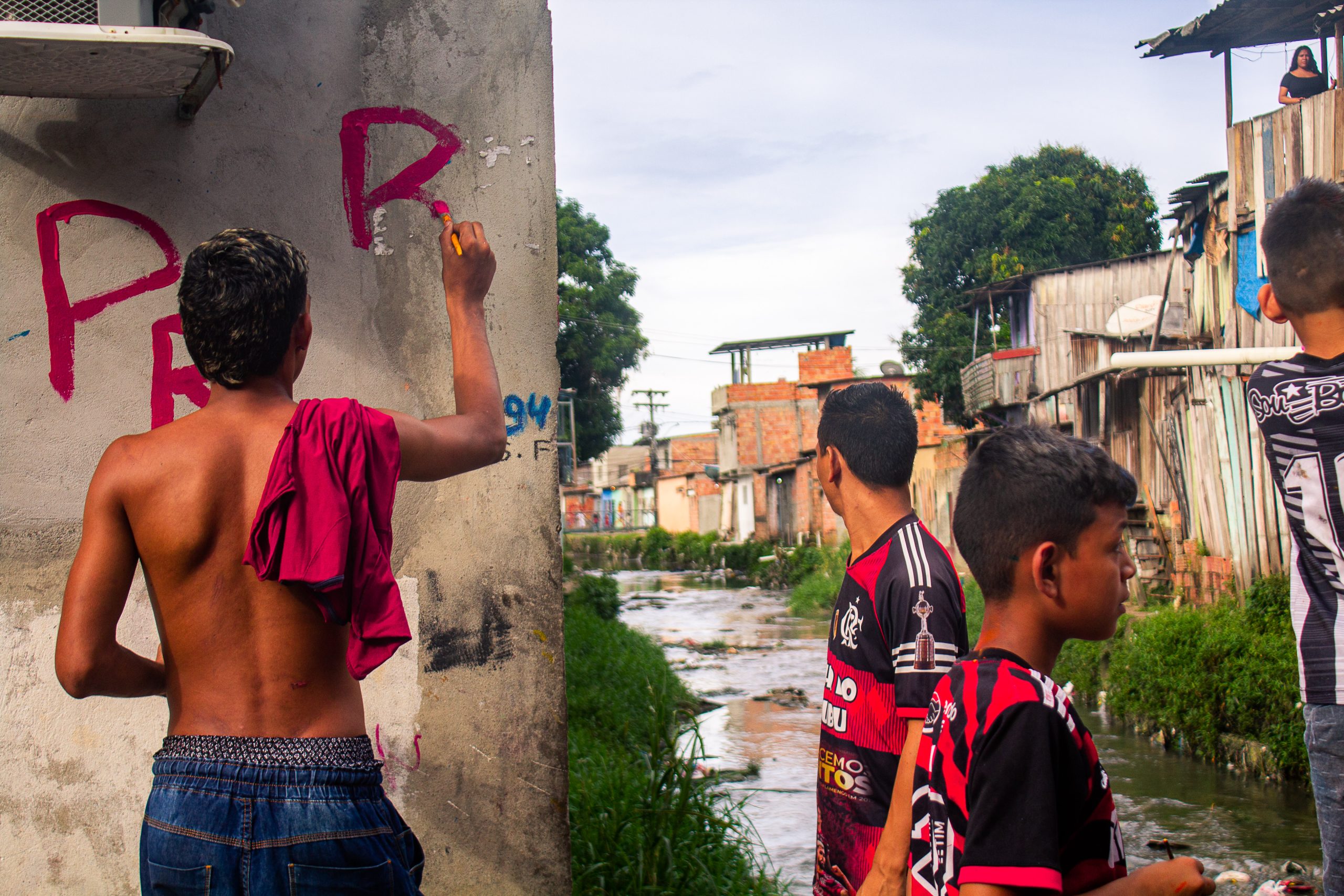Nos corpos periféricos colocados diante das múltiplas funções que devem exercer, pressionados pela pobreza, bombardeados de carências, que têm que pensar hoje no prato de amanhã, a arte entra que horas? Ela é vista como área privilegiada; entretanto, nós temos olhos de Gilberto Gil, sabemos que arte é igual a feijão com arroz, tem que estar no nosso prato todo dia. A arte é ordinária. A vida também deve sentir o cansaço de uma dança. E nessa criação no espaço-tempo de diversão e criatividade se constrói a autoestima. É onde as crianças se sentem escutadas, criativas, talentosas, felizes, belas, capazes e confiantes em si mesmas. Quando convidamos artistas para as ocupações, as crianças convivem com corpos semelhantes aos delas e os admiram. É um momento para se pensar “eu também posso”. Não é à toa que hoje tem criança aqui que sonha em ser artista. Nós pintamos juntos, conversamos, jogamos, criamos juntos. Não tem preço a felicidade de uma criança por ver sua pintura num varal em exposição ou numa parede de destaque na sua casa. Não tem preço ver a comunidade colorida, sentir que estamos morando num espaço mais bonito. É como no manifesto do coletivo Poro: é por uma cidade-festa, onde as ruas são para dançar, por uma relação próxima entre as pessoas e a cidade, pelo uso do espaço público como lugar de troca, festa, manifestação e encontros. Pelo fim da cidade-medo.