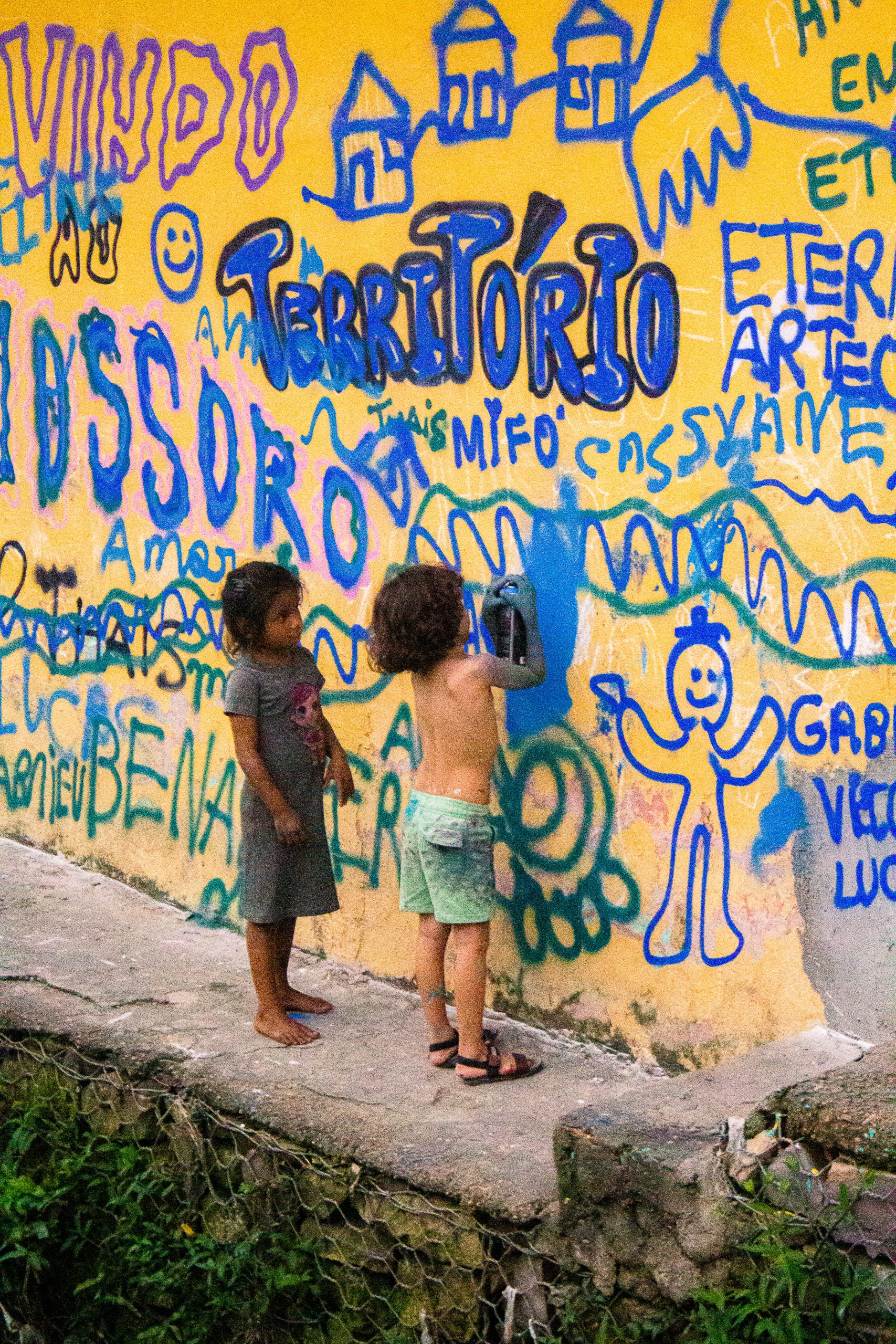Taís Araújo um dia perguntou: “Como criar crianças dóceis num país ácido?”. Desde 2021 estamos desenvolvendo ações na área, e vejo como isso me levou a um senso de responsabilidade em relação ao meu território. Eu ia nas casas pedir aos pais que me deixassem levar as crianças para tomar a primeira dose da vacina contra covid-19, ir no Cidade das Crianças brincar. Comecei a ter uma base de respeito e noção de que, se eu estou alcançando e adentrando certos espaços, tenho que estar presente para ampliar esses espaços, para que a minha entrada não seja um ponto final, e sim um ponto de partida de sonhos contínuos. Eu tenho que devolver meus sonhos ao meu território.