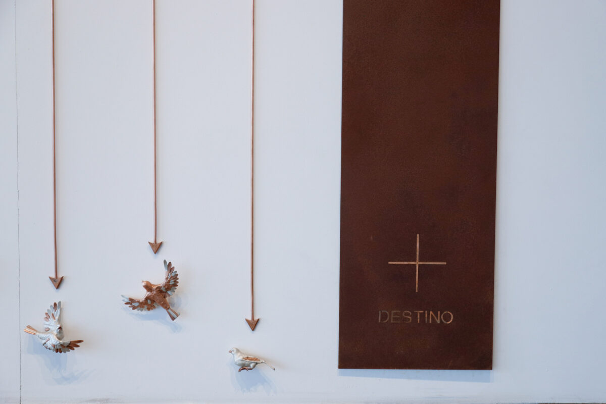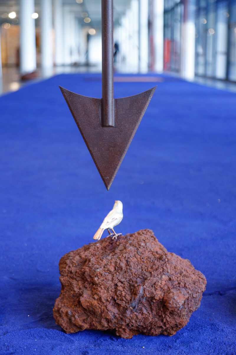 A brutalidade do sistema escravista nas minas contribuiu para a formação de uma sociedade profundamente desigual no Brasil colonial, deixando um legado de exploração que perdura na memória do país. A instalação, com suas flechas-patuás de ferro e os canários, invoca caminhos que de algum jeito agora se encontram desbloqueados, nos guiando para as possibilidades que persistem nos lugares onde o eco do passado ecoa. As origens de Luana se amalgamam com a história da extração do minério no Brasil, e tudo se torna mais íntimo quando sabemos da tragédia de seu bisavô, vítima de silicose, doença pulmonar causada pela inalação constante da sílica cristalina. Ao adentrar o pulmão, ela enrijece as estruturas da caixa torácica, causando dificuldades na respiração. O bisavô de Luana não foi o único a ceder diante de tais circunstâncias, asfixiado por um sistema escravocrata que ainda hoje se faz sentir. Os traumas de uma família viram os traumas de um povo, que, por sua vez, viram os traumas de um país.