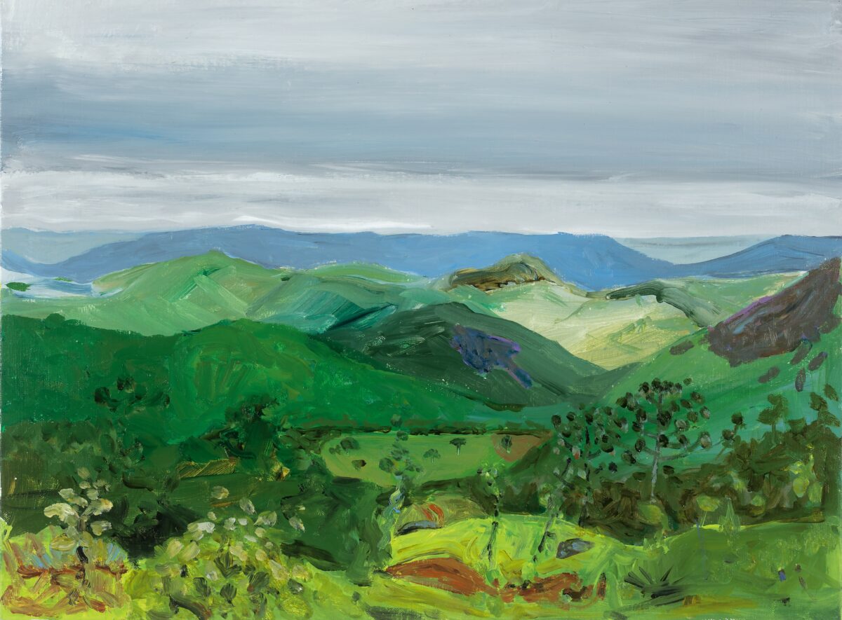 Sabendo de toda essa relevância, Tiago Mesquita logo acalma os ânimos dos entendidos, preparando-os para o que vem a seguir: “Essas paisagens são atípicas na trajetória de Zerbini. São telas pequenas, produzidas rapidamente, destituídas dos complexos jogos de padrões, cores e espaços que permeiam suas pinturas recentes. São obras feitas in loco, diante do tema, em uma tentativa delicada de capturar o que é visto, sem retoques ou ajustes posteriores no estúdio. Zerbini age com rapidez, tomando decisões e resolvendo problemas com instrumentos e materiais ao seu alcance, sem precisar de planejamentos minuciosos.”