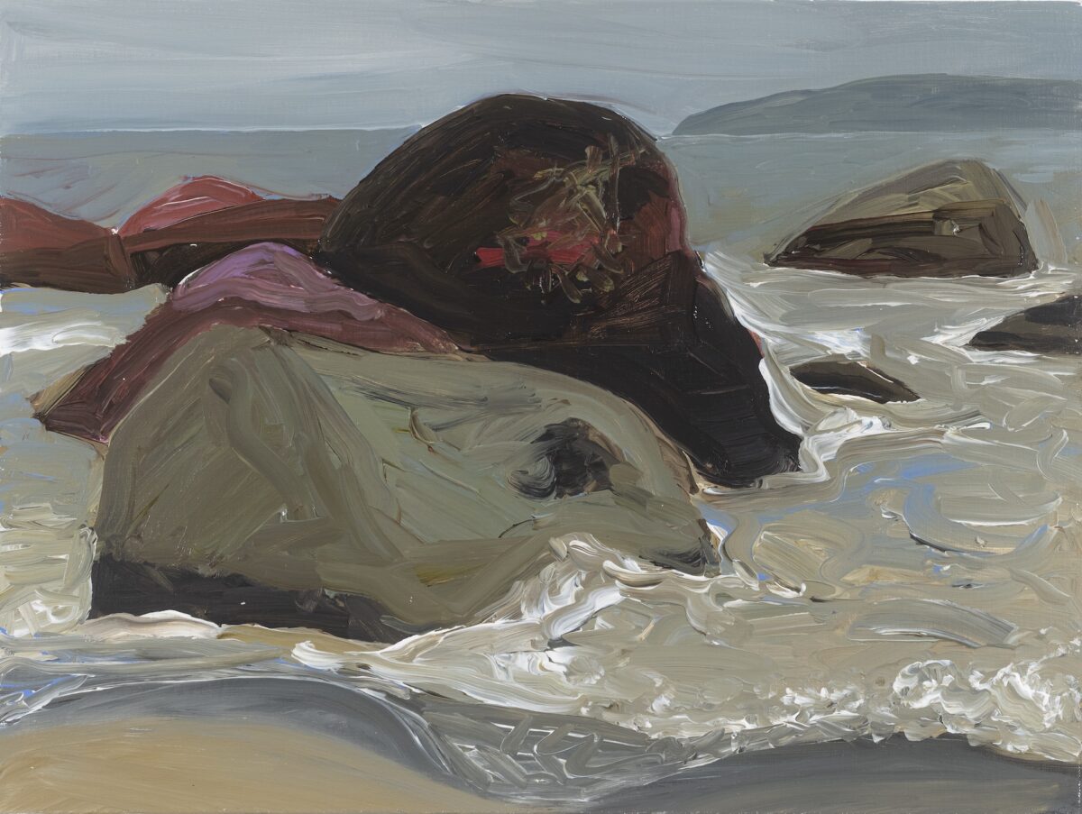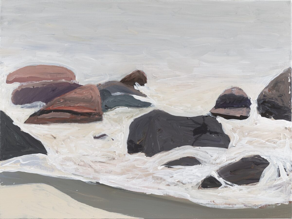 O primeiro núcleo da exposição, “viver é ruminar paisagens”, afirma a centralidade da paisagem na prática artística de Zerbini. Sua paisagística transcende a pintura, manifestando-se em múltiplas linguagens e experimentações. Uma das obras de destaque é High Definition (2009), peça monumental que marca o retorno de Zerbini às pinturas figurativas após um período dedicado ao trabalho com o grupo Chelpa Ferro. Este núcleo ilustra como a paisagem, para Zerbini, é tanto uma fonte de inspiração quanto um método de experimentação contínua, além de ser uma metáfora para os fluxos, para as energias, para as relações que nos constituem e que, em certo sentido, escapam à nossa compreensão.