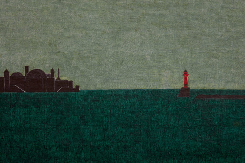 Mesmo que com o cenário natural o circundando com toda a sua glória, o personagem de Leone, que carrega um olhar desanimado firme, não parece muito afeito à vida no cais. Há um distanciamento ali presente, ainda que jamais dito. Um relance de vida, seja essa qual for, só se apresenta quando ele afia sua faca Deba, aquela que é cinematograficamente pontuda e afiada, para cortar um peixe-vermelho. Por um buraco na escama do animal, ele vislumbra o desejo. Mas desejo de quê? De fuga? De não ser sozinho? De amar carnalmente? Um desejo incontornável de amar da forma mais simples?